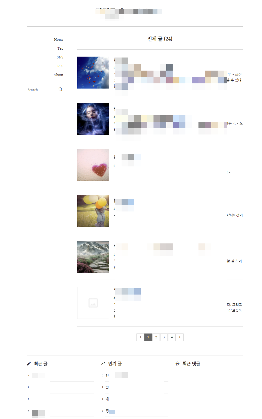 티스토리에는 다양한 스킨이 무료로 제공됩니다. 어느 날 웹서핑 중 우연히 이쁜 블로그를 발견하곤 "JB 스킨"으로 제작된 것을 알고 유료 구입까지 하게되었습니다.